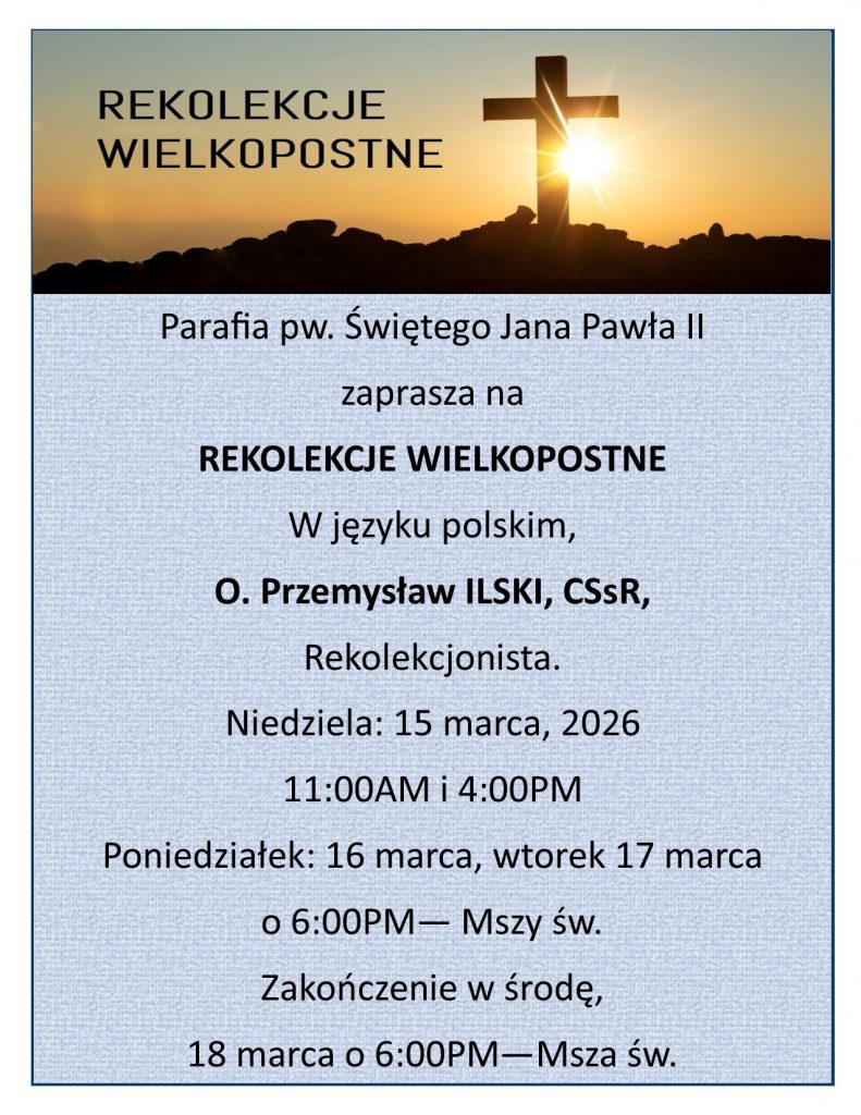 Rekolekcje Wielkopostne – 15-18 marca 2026 r. by Waldemar Wieladek | Feb 11, 2026 | Ogólne, Polish CCD